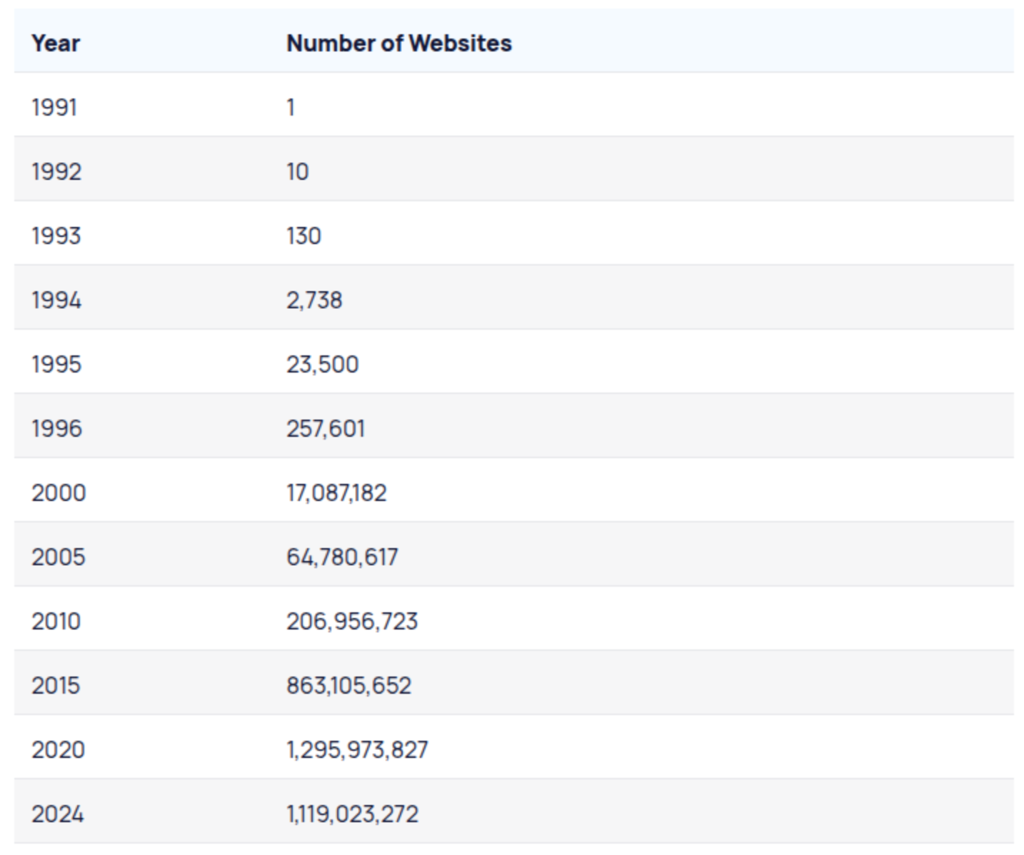 Between 1991 and 2024 an astounding 1,119,023,272 websites were built.